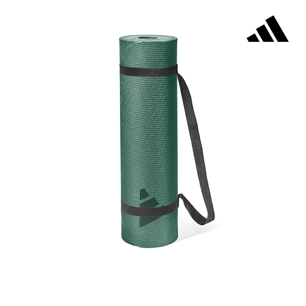 Adidas 環保壓紋瑜珈墊 10mm 提供極高的舒適度與緩衝效果,特別適合需要最大支撐的高強度瑜珈訓練或伸展練習。厚實的設計減少地面衝擊,保護關節,提升運動過程中的穩定感。使用環保材料製成,防滑效果出色,是長時間練習者的理想選擇。