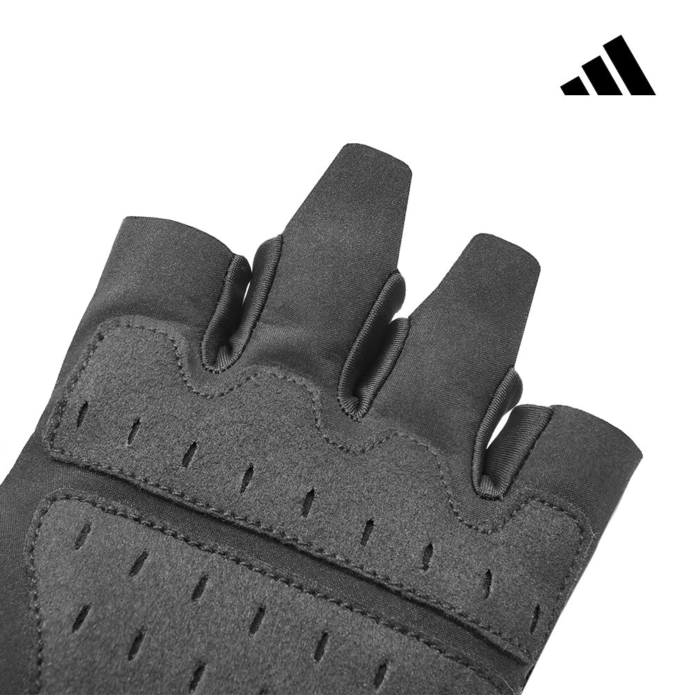 Adidas 專業透氣訓練手套 (黑) 具備輕量透氣的設計,能有效提升抓握力與舒適度,適合健身、重量訓練等運動。其手掌區域採用耐磨材質,提供額外保護與支撐,並搭配可調式魔鬼氈設計,確保穩固貼合。手套適用於 XS 至 XL 尺寸,適合不同手型需求。